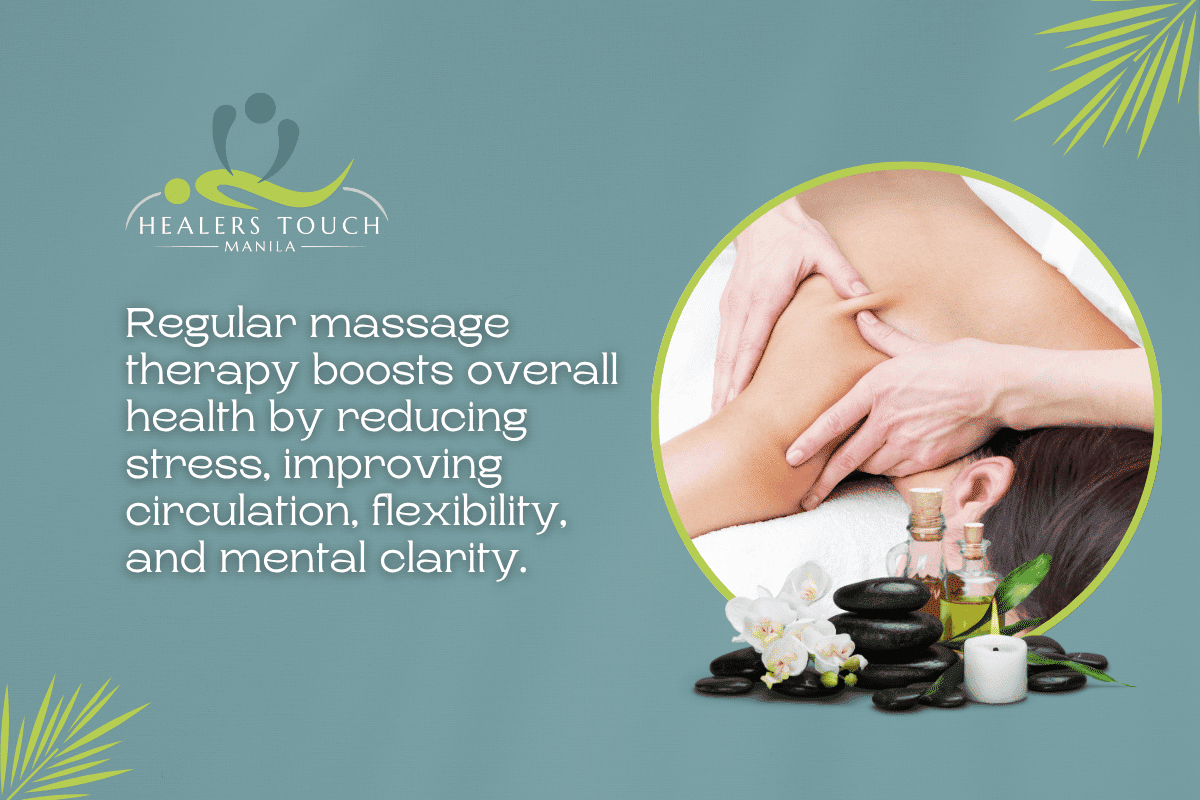 The addition of massage sessions to your life agenda delivers both physical support to your body and mental care to your mind. The effects of massage treatment build up over time when you get sessions either every week or monthly because they help reduce stress while keeping pain at bay as they increase blood flow and enhance rest quality. Getting massages provides basic yet powerful methods for improving total wellness. Healer’s Touch Manila provides top-quality home service massages through their professional team to help you receive convenient healthcare.
